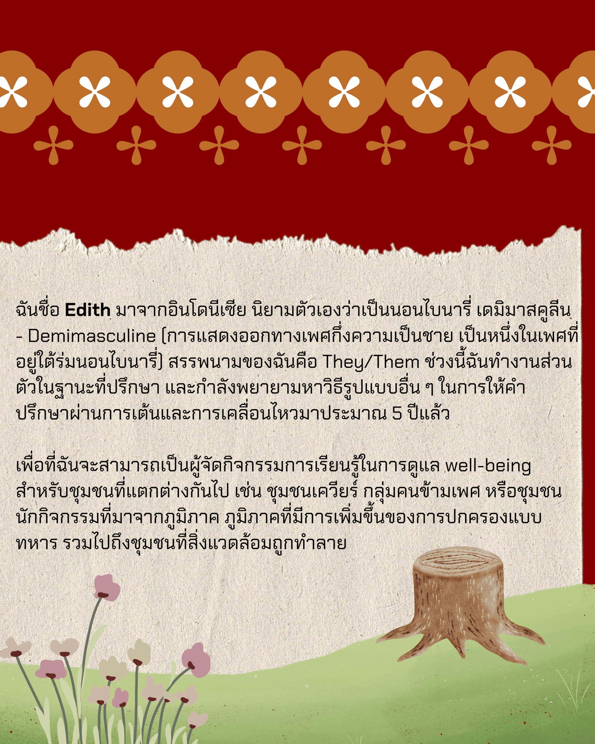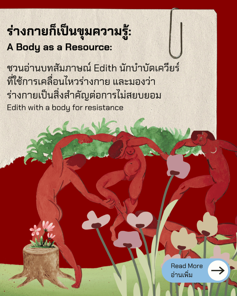 ร่างกายก็เป็นขุมความรู้: ชวนอ่านบทสัมภาษณ์ Edith นักบำบัดเควียร์ที่ใช้การเคลื่อนไหวร่างกาย และมองว่า ร่างกายเป็นสิ่งสำคัญต่อการไม่สยบยอม